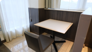 縦長のレイアウトを生かして入口から最も離れた部屋の奥で集中できる