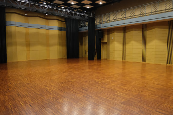 | 主な設備 | ・可動式舞台・音響設備・スクリーン・スポットライト設備あり ・練習用に壁面鏡あり ・主催者側控室1室あり |