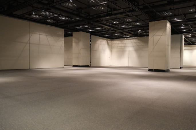 | 主な利用 | 美術展覧会や作品展を開催し、鑑賞や発表の場として使用 ※パーテーションで区切れば4室に分割可能 (区切った場合、通路等をつくりますので、500平方メートル の1/4よりは狭くなります) |