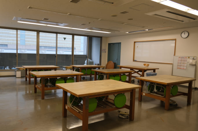 | 主な設備 | 机(90cm×90cm)13台、椅子57脚、流し台、ロッカー |