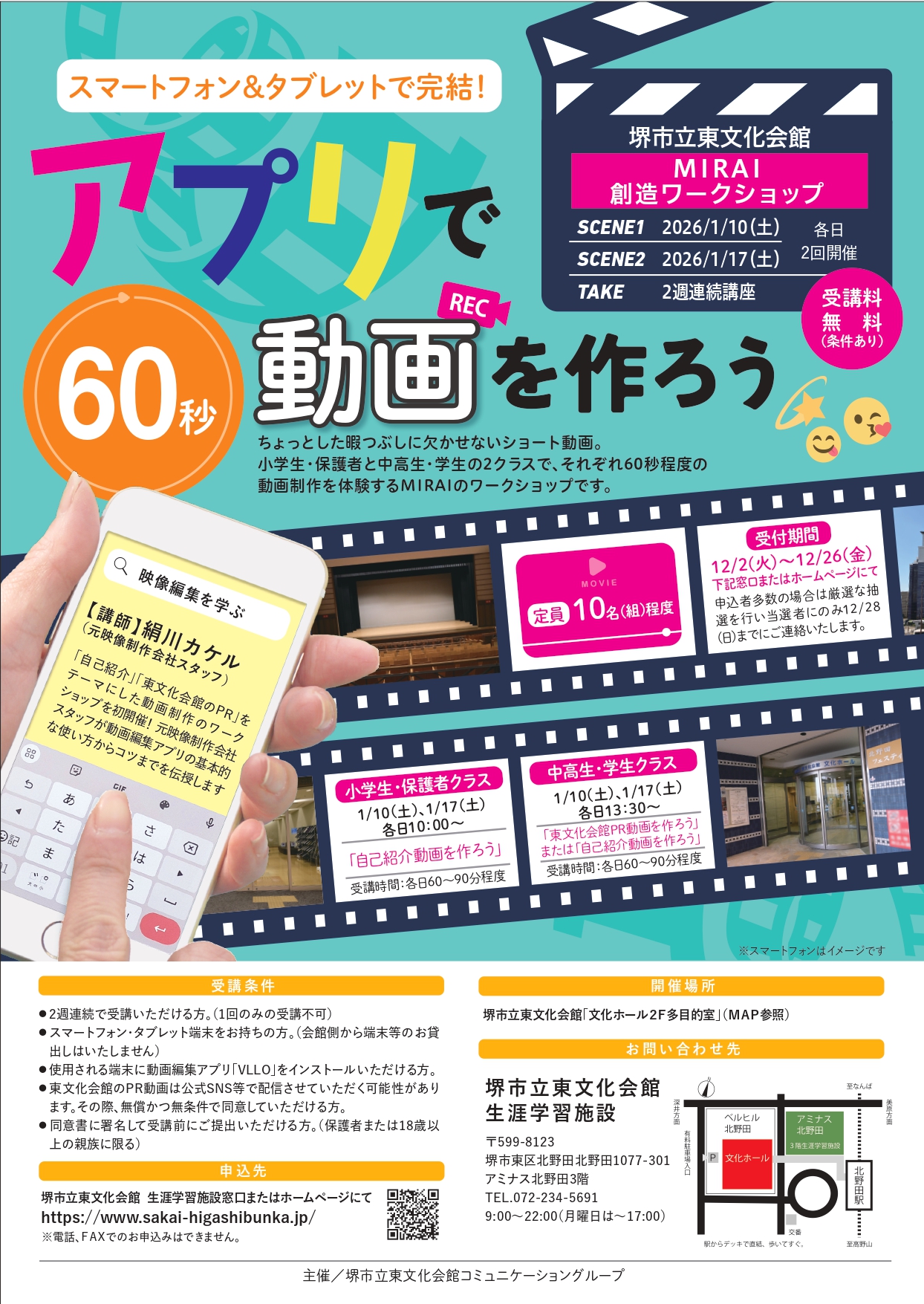 MIRAI創造ワークショップ「スマートフォン&タブレットで完結!アプリで60秒動画を作ろう」