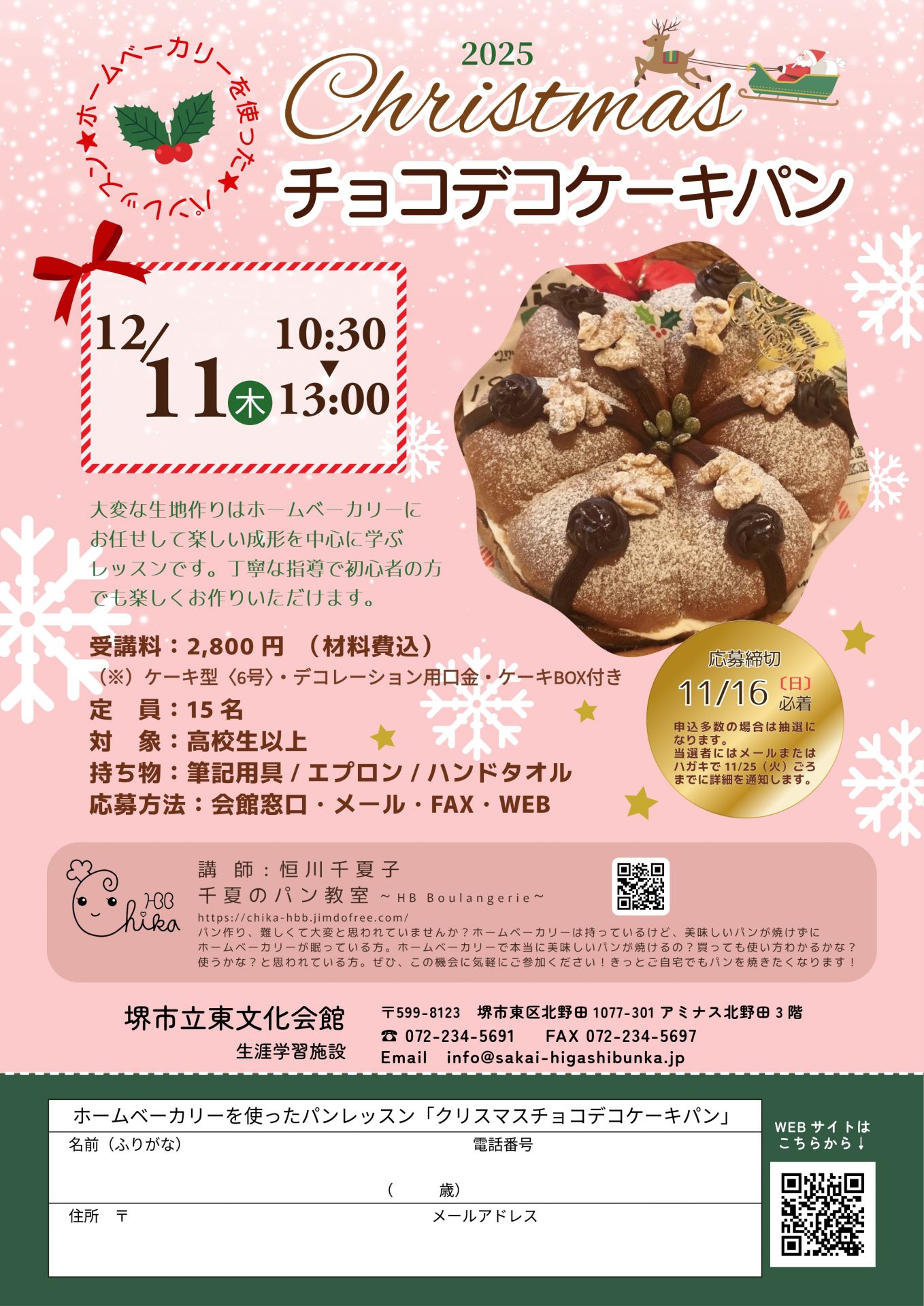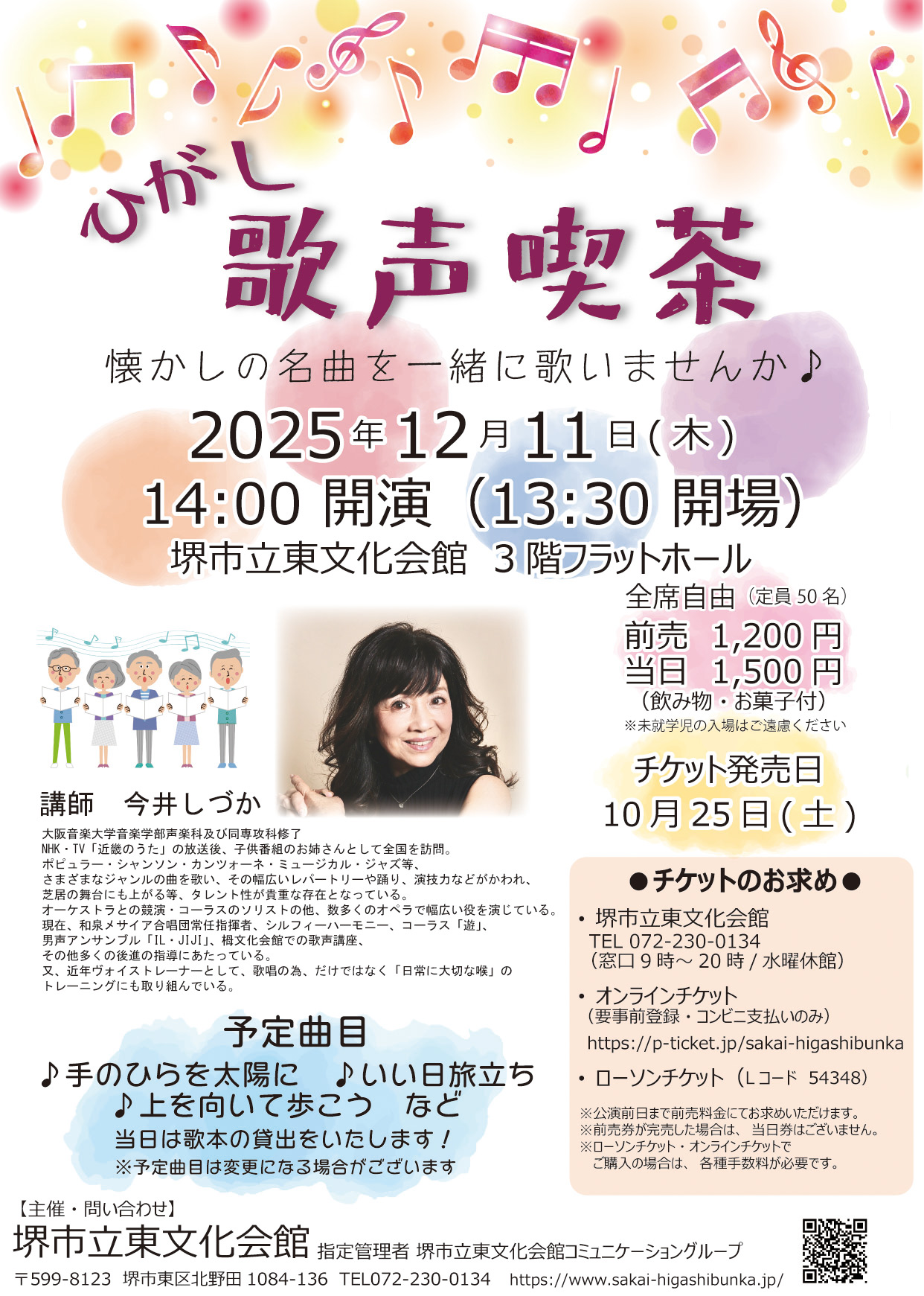 公演・イベント一覧 堺市立東文化会館で開催されるイベントの一覧です。 10月 11月 12月 1月 2月 3月 10月 11月 12月 1月 2月 3月 - 音楽 主催近日発売 ひがし歌声喫茶 開催日 2025年12月11日(木) 14:00開演(13:30開場) - 講座・公演 主催 ホームベーカリーを使ったパンレッスン☆クリスマス チョコデコケーキパン 開催日 2025年12月11日(木)10:30~13:00 時間 10:30~13:00